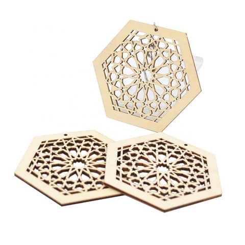 Posavasos individuales personalizados artesanías de madera cortadas con láser patrón geométrico de madera