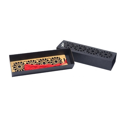 Marcapáginas de madera de corte láser de regalo musulmán Ramadán con borla y caja de papel de diseño hueco